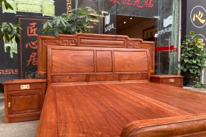 缅甸花梨木床的声音,说不定是板与板之间没有接合好,中间有空隙。也有可能这个地方的板厚度不够,也有可能是材料里面混杂有白边。此款匠心居缅甸花梨国色天香精品大床全部采用大料来制作全榫卯结构睡上去是没有一点响声的。