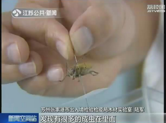 苏州张家港市出入境检验检疫局 木材实验室陆军说,一般天牛的幼虫比较难以鉴定,但是这次在现场查验的时候,发现有很多成虫在木材里面。工作人员赶紧将这些天牛带回实验室进行鉴定。