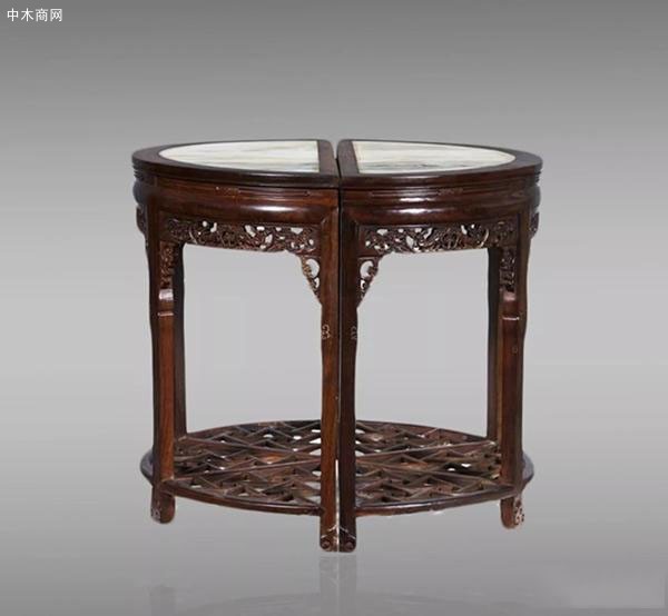 图3:红木嵌大理石半桌 (一对), 拍卖成交价格估计:NTD 3,784,000-3,784,000,比较终成交价格:RMB 958,320, 拍卖专场:中正拍卖有限公司 台北中正2018迎春拍卖会, 拍卖成交时间:2018-01-26, 尺寸:直径2375px;高2050px。