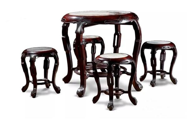 图4:清 红木嵌云纹石圆桌椅 (一组五件, 拍卖成交价格估计:RMB 800,000-1,000,000,比较终成交价格:RMB 1,092,500, 拍卖专场:西泠印社拍卖有限公司 2014年秋季拍卖会, 拍卖成交时间:2014-12-13, 尺寸:高2250px。