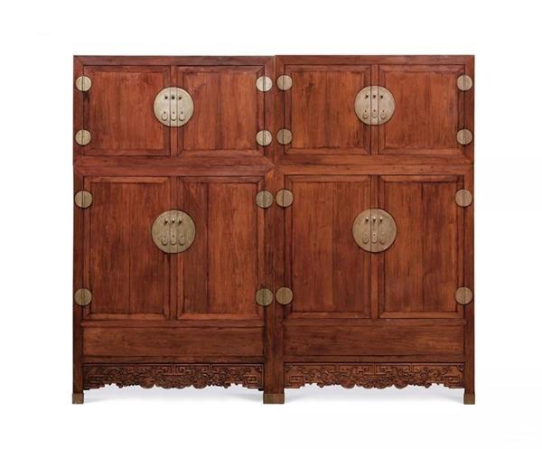 图8:清中期 红木大四件柜成对, 拍卖成交价格估计:RMB 4,000,000-7,000,000,比较终成交价格:RMB 4,370,000, 拍卖专场:中国嘉德国际拍卖有限公司 中国嘉德2013年秋季拍卖会, 拍卖成交时间:2013-11-17, 尺寸:170.5×68.5×7412.5px。