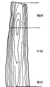中材介于树木中间部分,材质纤维匀称,水分含量适中,变异性较小。