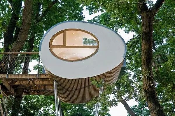 你想跟自由在空中飞翔的小鸟共眠一室吗,这间树屋能帮到你。虽然屋内装有一面隔离墙,但你仍然可以通过墙中的小孔观察到它们的一举一动。