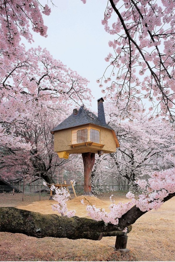 正如动漫内出现的场景一般,这间由建筑师Terunobu Fujimori打造的树屋能在你品茶的同时居高临下欣赏这片让人心旷神怡的樱花林。