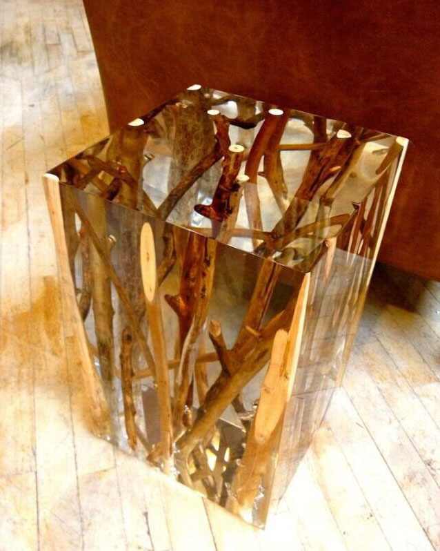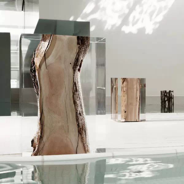 意大利Alcarol工作室爱使用树脂,之前是将树脂与橡木结合在一起。家具系列则展示了错综复杂的树脂纹理与透明玻璃的时尚结合。