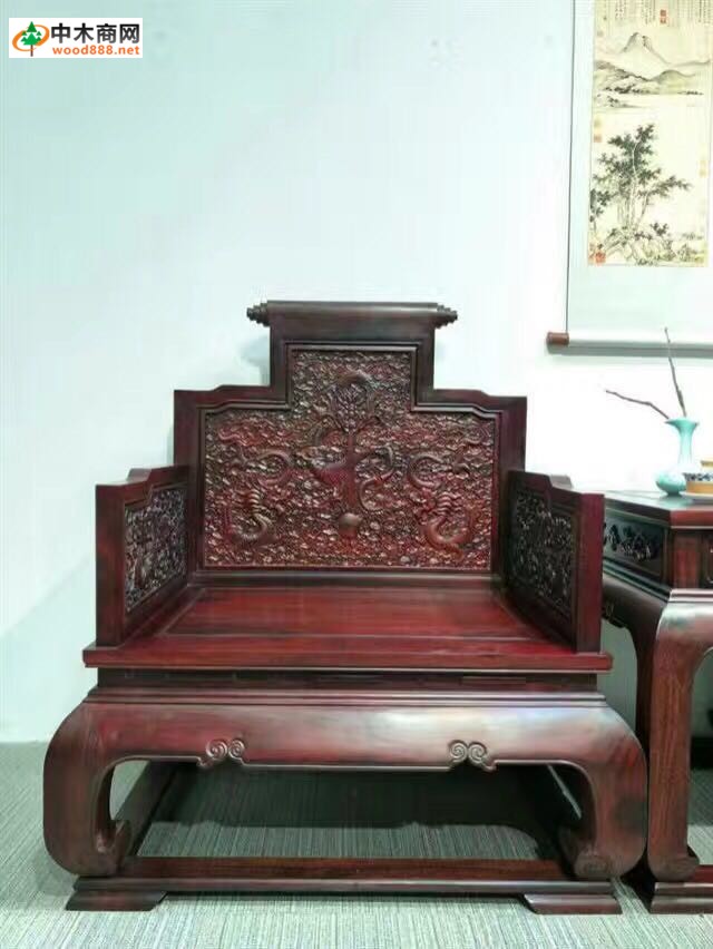 (血檀)宝座三件套“宝座尺寸86x62㐅110茶几尺寸62x45x67