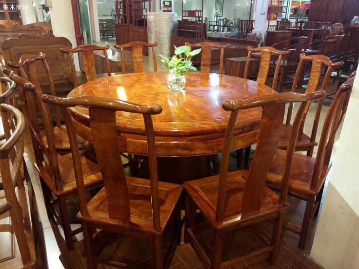 缅甸花梨木圆餐桌十一件套适用范围最强。