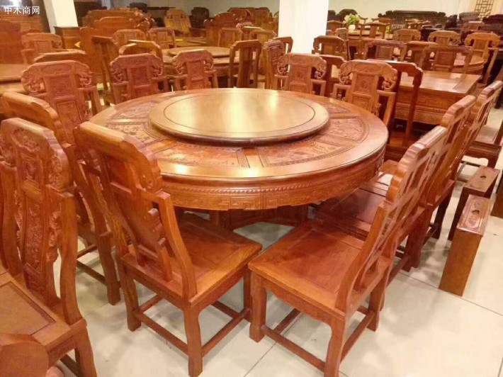 缅甸花梨木圆餐桌十一件套适用范围最强。